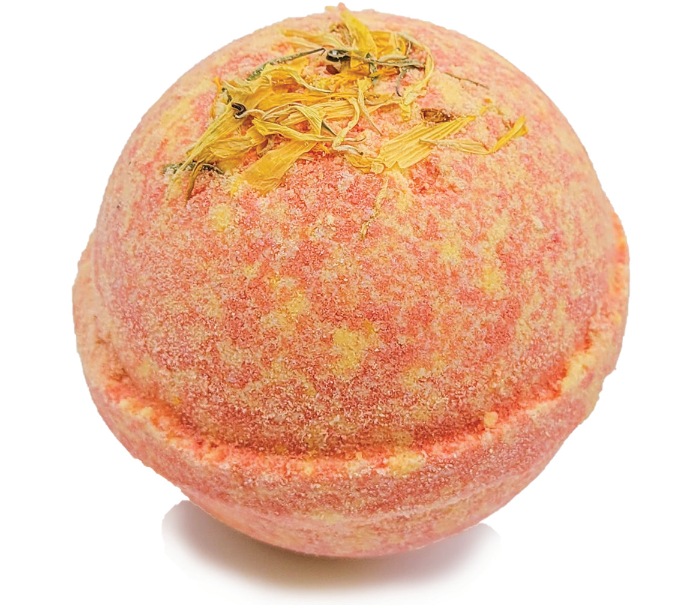 This bath bomb is like bathing in golden sunshine! Let the sweet honey aroma, combined with amber and vanilla fill your senses – while you let go of all stress. Made with shea butter, sunflower oil and sea salt to hydrate and nourish your skin. Soothing calendula petals give it an extra special touch that will leave you feeling relaxed and rejuvenated – just like a bee buzzing around a field of wildflowers!